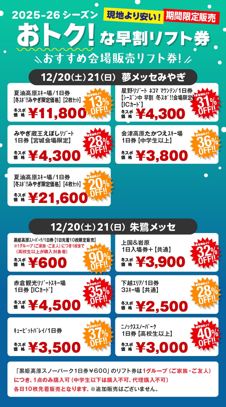 - 完売告知は会場内リフト券売場のみとなりますので、予めご了承ください。