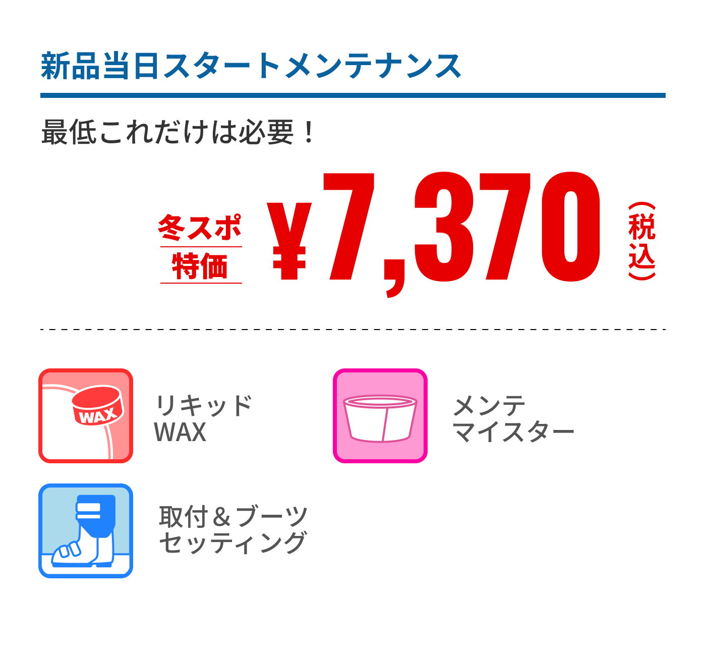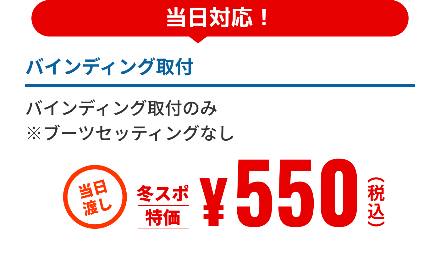 ※ブーツセッティングで使用するブーツは、冬スポの用意する標準的なもので行います。最終的には足を入れていただき、お客様自身で調整お願い致します。